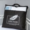 Ткань чехла подушек и одеял в этой коллекции изготовлена с добавлением карбоновых (углеродных) нитей. Состав ткани – 99% батист-микрофибра, 1% — carbon (углеродное волокно). Такая ткань очень плотная, шелковистая на ощупь, абсолютно гиппоалергенна, лучше сохраняет тепло и способствует свободной циркуляции воздуха. Изделия коллекции Flaum ENERGIE от ANNA FLAUM® из микрофибры с карбоновыми (углеродными) нитями обладают уникальными свойствами, способствующими снятию избытка статического электричества, создавая барьер для электромагнитного излучения.