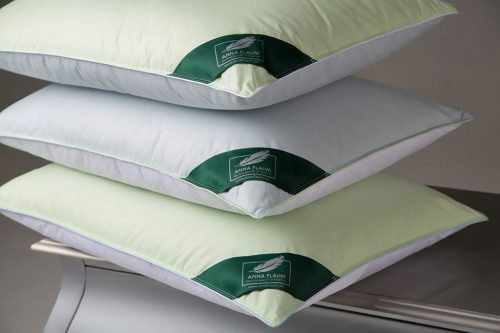 Дизайнерское видение нежных цветов радуги перенесено на текстиль этой коллекции – подушки выполнены в чехлах, стороны которых имеют разные цвета! Flaum REGENBOGEN от ANNA FLAUM® — это великолепное сочетание превосходного инлета из 100% хлопка голубого, мятного и белого цветов и наполнителя, состоящего из 70% гусиного пуха и 30% кончиков пера. Атласный кант контрастного цвета имеет двойную отстрочку , что является дополнительной гарантией более прочного шва, исключающего миграцию пуха в процессе использования.