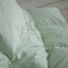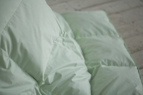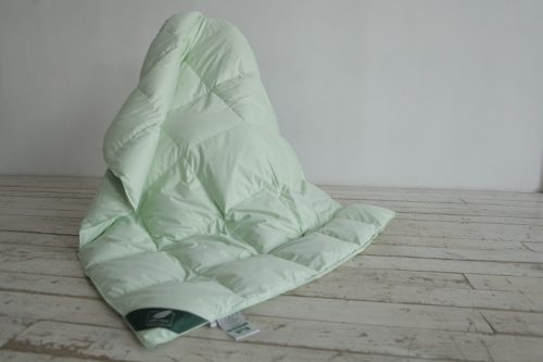 Атласный кант мятного цвета идеально гармонирует с тканью чехла и имеет двойную отстрочку , что является дополнительной гарантией более прочного шва, исключающего миграцию пуха в процессе использования.
