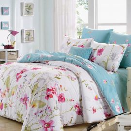 Верх пододеяльника и наволочек — жаккардовый люкс-сатин (55% вискоза, 45% хлопок). Оборотная сторона пододеяльника, наволочек и простыня — люкс-сатин (100% хлопок).