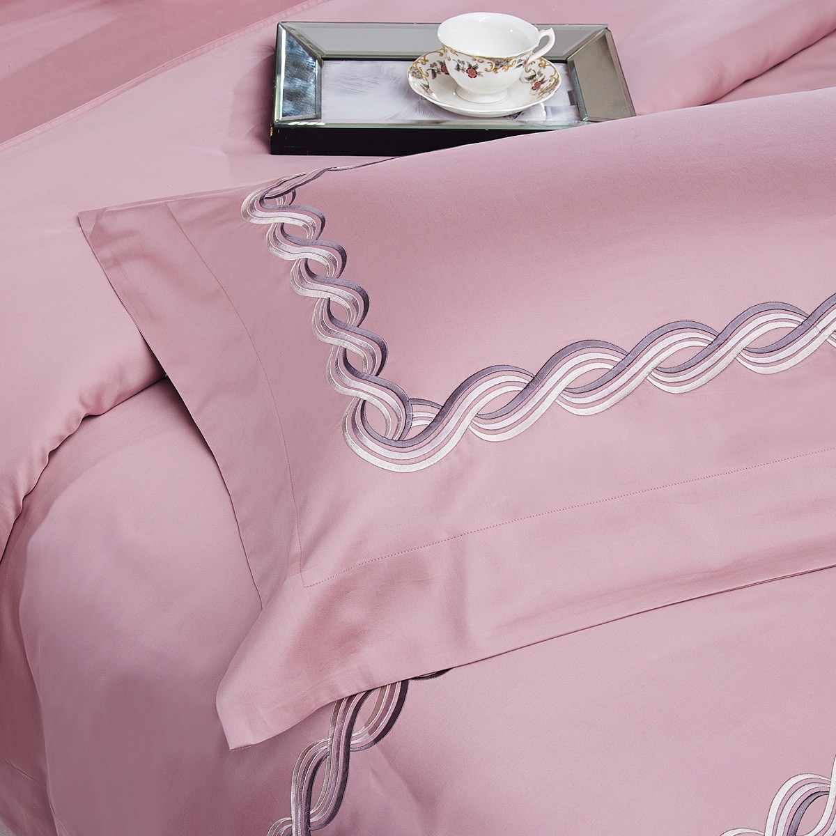 Комплекты из египетского хлопка благородных оттенков декорированы плотной глянцевой вышивкой в искусно подобранной гамме цветов.