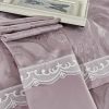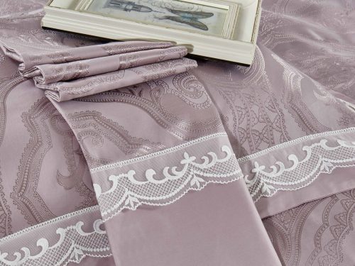 Верх пододеяльника и наволочек — жаккардовый люкс-сатин (55% вискоза, 45% хлопок). Оборотная сторона пододеяльника, наволочек и простыня — люкс-сатин (100% хлопок).