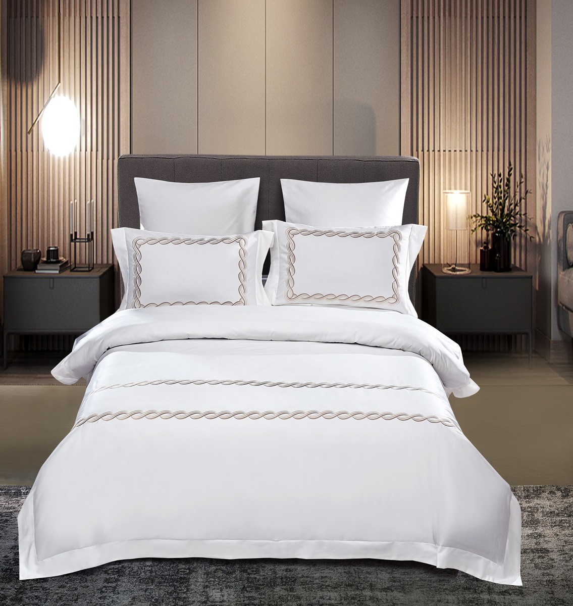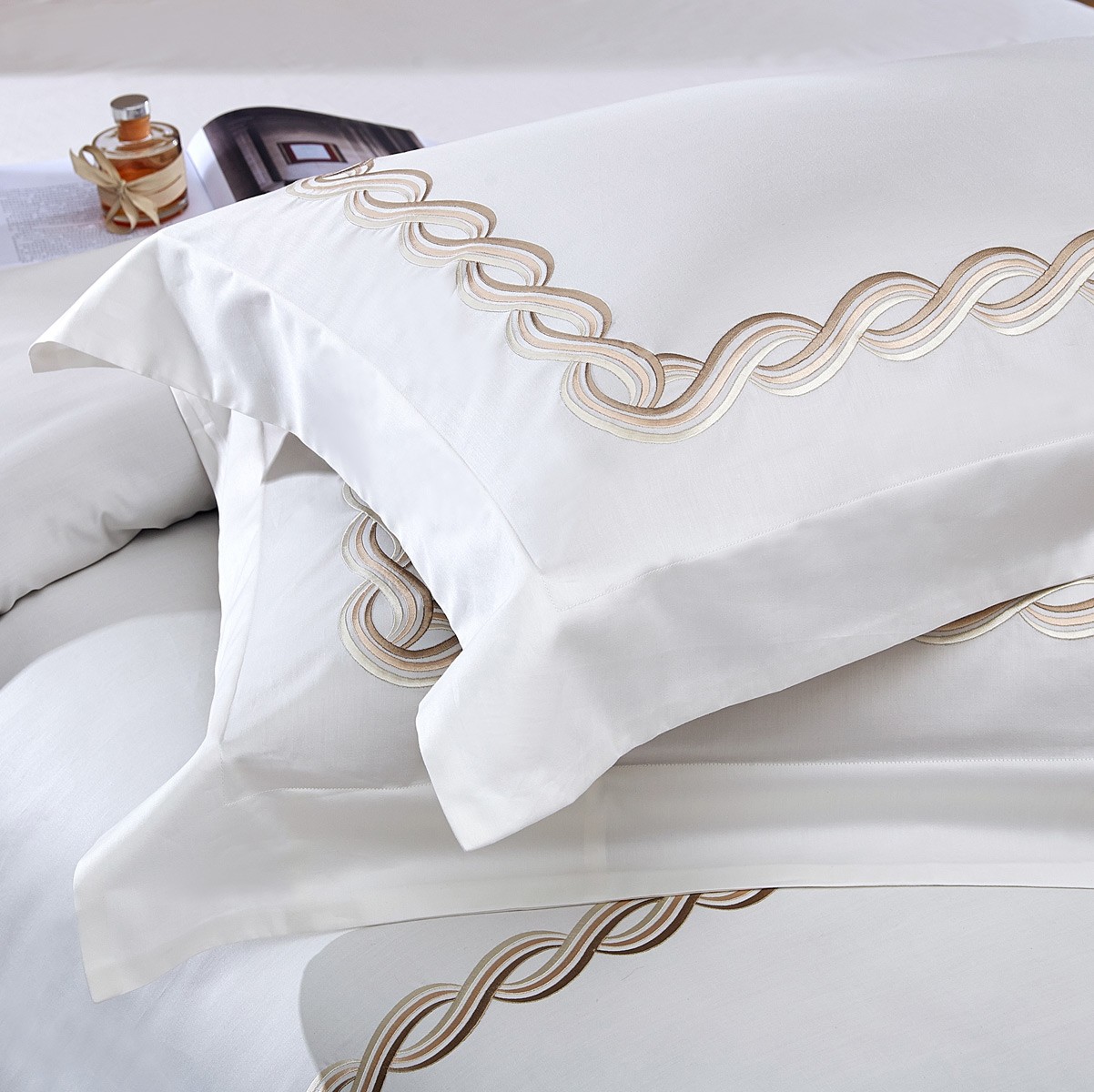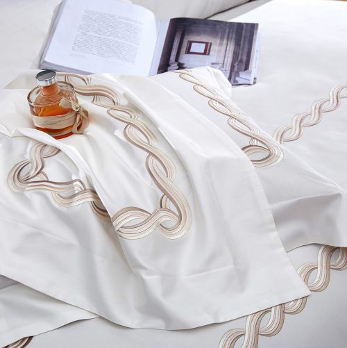 Комплекты из египетского хлопка благородных оттенков декорированы плотной глянцевой вышивкой в искусно подобранной гамме цветов.