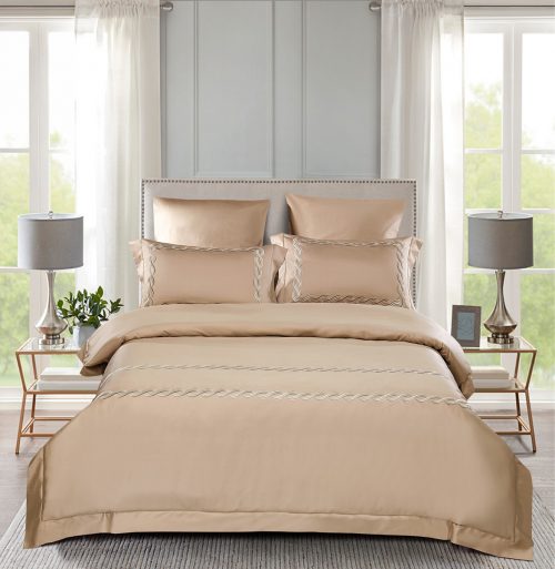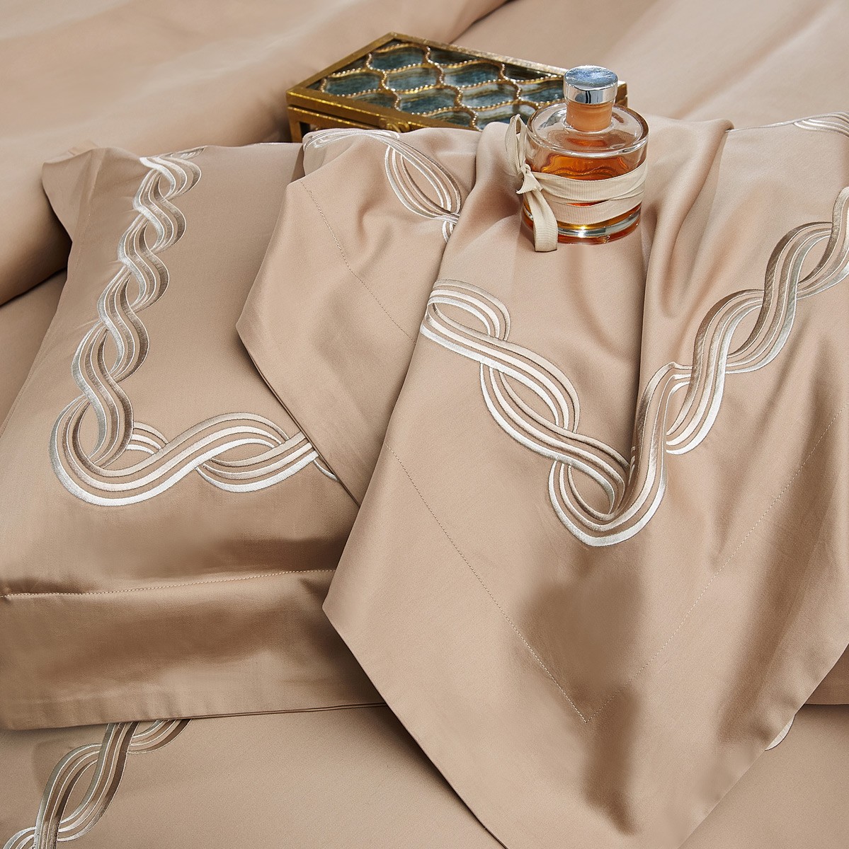 Комплекты из египетского хлопка благородных оттенков декорированы плотной глянцевой вышивкой в искусно подобранной гамме цветов.