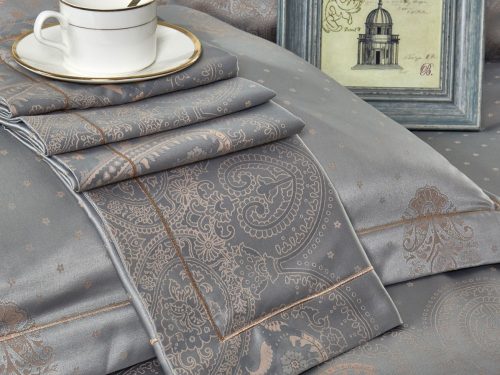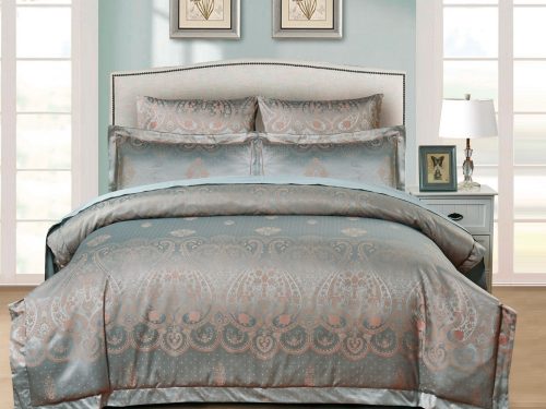 Комплект из смесовой ткани: жаккардовая ткань на 45% состоит из тенсела, делающего ткань очень похожей на шелк.