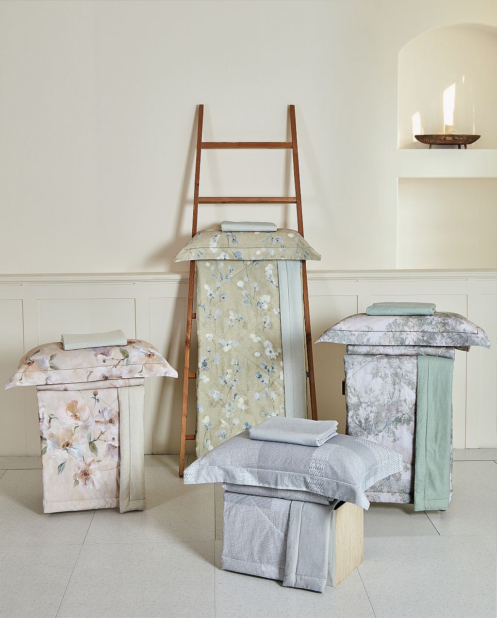 Комплект из одеяла («одеяло-комфортер» — используется вместо пододеяльника), простыни и наволочек из египетского хлопка.