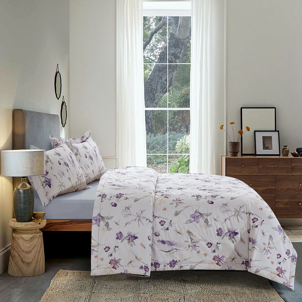 Комплект из одеяла («одеяло-комфортер» — используется вместо пододеяльника), простыни и наволочек из египетского хлопка.