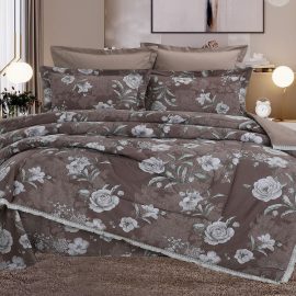 Романтический и ценный подарок для тех, кто любит весеннее время – время обновления, пышного цветения и ярких красок! На белоснежном поле распускаются роскошные цветы магнолии, знаменитые опьяняющим ароматом и тонкой, величественной красотой. Утонченная многоцветная вышивка-сеточка делает цветы объёмными, а нежно-розовые декоративные ушки у наволочек дополняют романтический образ комплекта. Состав: люкс-сатин (100% хлопок).