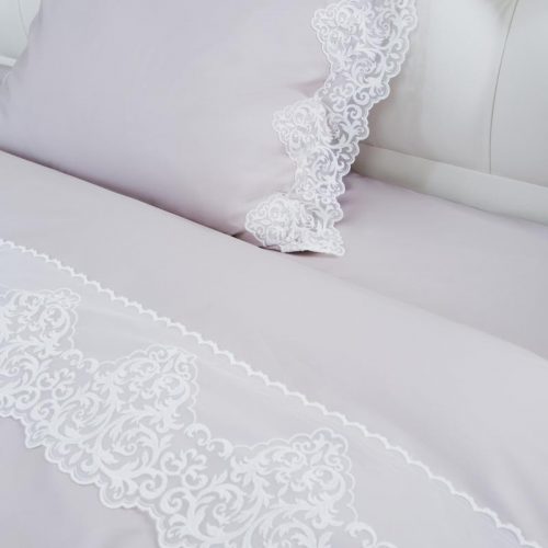 Очарование и красота этого комплекта — в гармонии классического серебристо-серого цвета с роскошным кружевом, в котором с истинно итальянскими традициями переплетаются элегантность узора и воздушность основы, ажурность исполнения и законченный романтический образ, способный очаровать вас с первого взгляда.