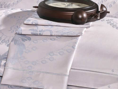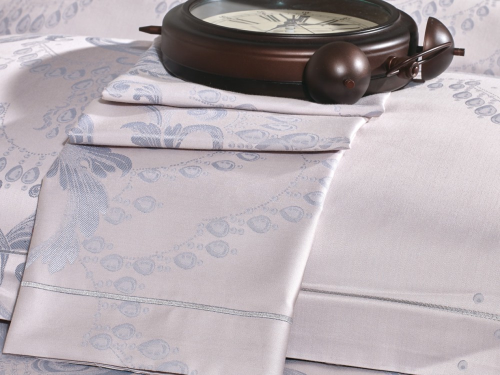 Верх пододеяльника и наволочек — жаккардовый люкс-сатин (60% египетский хлопок, 40% полиэстер). Оборотная сторона пододеяльника, наволочек и простыня — сатин (100% хлопок).