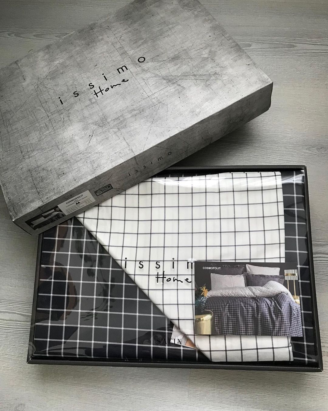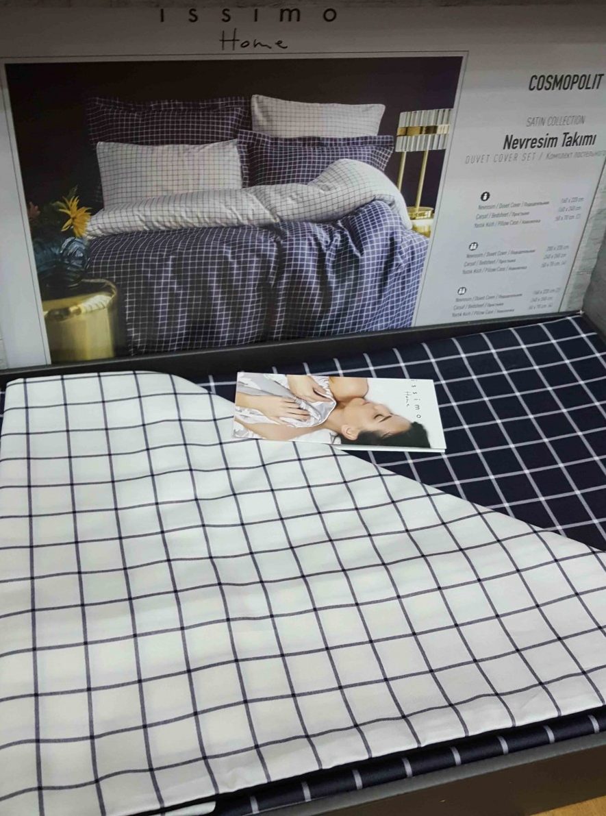 Комплект постельного белья от турецкого бренда Issimo Home «Cosmopolit». Очень стильный комплект из сатина де люкс. Сочетание белого с благородным серым оттенком, и классической клетки делает его универсальным для использования в любых случаях.