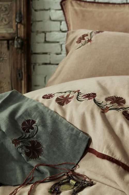 Отделка пододеяльника и наволочек вышивкой, бахромой.