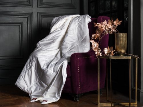 Оба одеяла имеют чехлы из тончайшего хлопкового батиста высокой плотности (TC 350), с различными наполнителями: TENCEL — у легкого и 100% NATURAL SILK (Mulberry)- у всесезонного. Вы можете использовать любое одеяло по отдельности или, объединив их с помощью несложной операции, — совместно. Но даже после объединения, вы имеете возможность выбора внешней или внутренней стороны вашего Альянса.