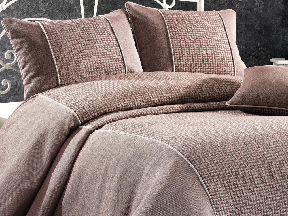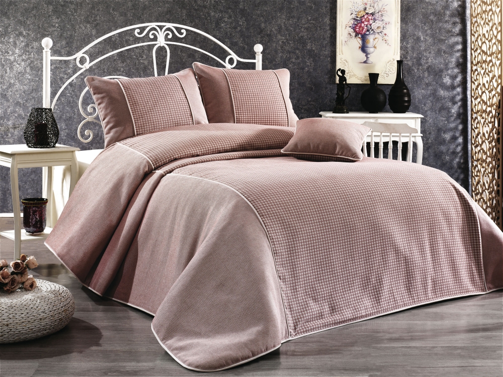 Восхитительное покрывало с жаккардовым орнаментом от турецкого производителя Grazie Home превратит даже самый обычный интерьер спальни в роскошные аппартаменты. Изысканный жаккардовый орнамент в восточном стиле делает покрывало объемным и мягким. Верх выполнен из 100% полиэстера, низ: 100% хлопок, что позволяет использовать покрывало как легкое одеяло, ведь хлопок очень экологичен и приятен к телу. По периметру покрывала идет мягкий тканевый кант. Коллекция выполнена в спокойных темных оттенках и поэтому подойдет под любой интерьер. Так же в комплект входят 3 наволочки: 50х70 см (2 шт) и 45х45 см (1 шт). Наволочки на молнии, выполнены в идентичном дизайне с покрывалом.
