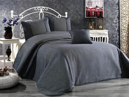 Восхитительное покрывало с жаккардовым орнаментом от турецкого производителя Grazie Home превратит даже самый обычный интерьер спальни в роскошные аппартаменты. Изысканный жаккардовый орнамент в восточном стиле делает покрывало объемным и мягким. Верх выполнен из 100% полиэстера, низ: 100% хлопок, что позволяет использовать покрывало как легкое одеяло, ведь хлопок очень экологичен и приятен к телу. По периметру покрывала идет мягкий тканевый кант. Коллекция выполнена в спокойных темных оттенках и поэтому подойдет под любой интерьер. Так же в комплект входят 3 наволочки: 50х70 см (2 шт) и 45х45 см (1 шт). Наволочки на молнии, выполнены в идентичном дизайне с покрывалом.