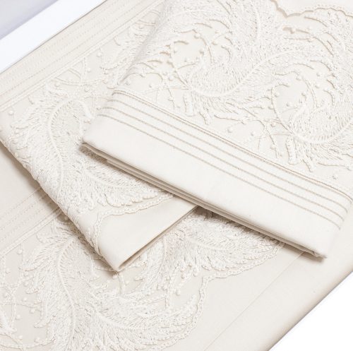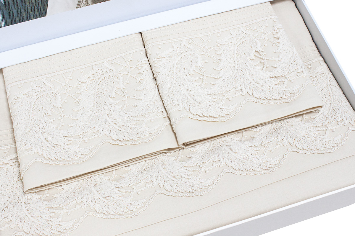 Постельное белье от турецкого бренда Grazie Home выполнено из прочного сатина, мягкого и невероятно шелковистого . Комплект украшен вышитым кружевом по краю наволочек и пододеяльника.
