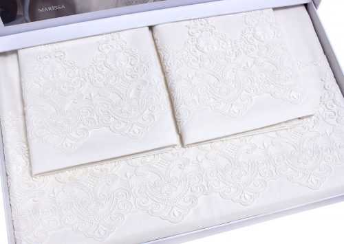 Постельное белье от турецкого бренда Grazie Home выполнено из прочного сатина, мягкого и невероятно шелковистого . Комплект украшен вышитым кружевом по краю наволочек и пододеяльника.