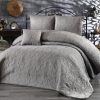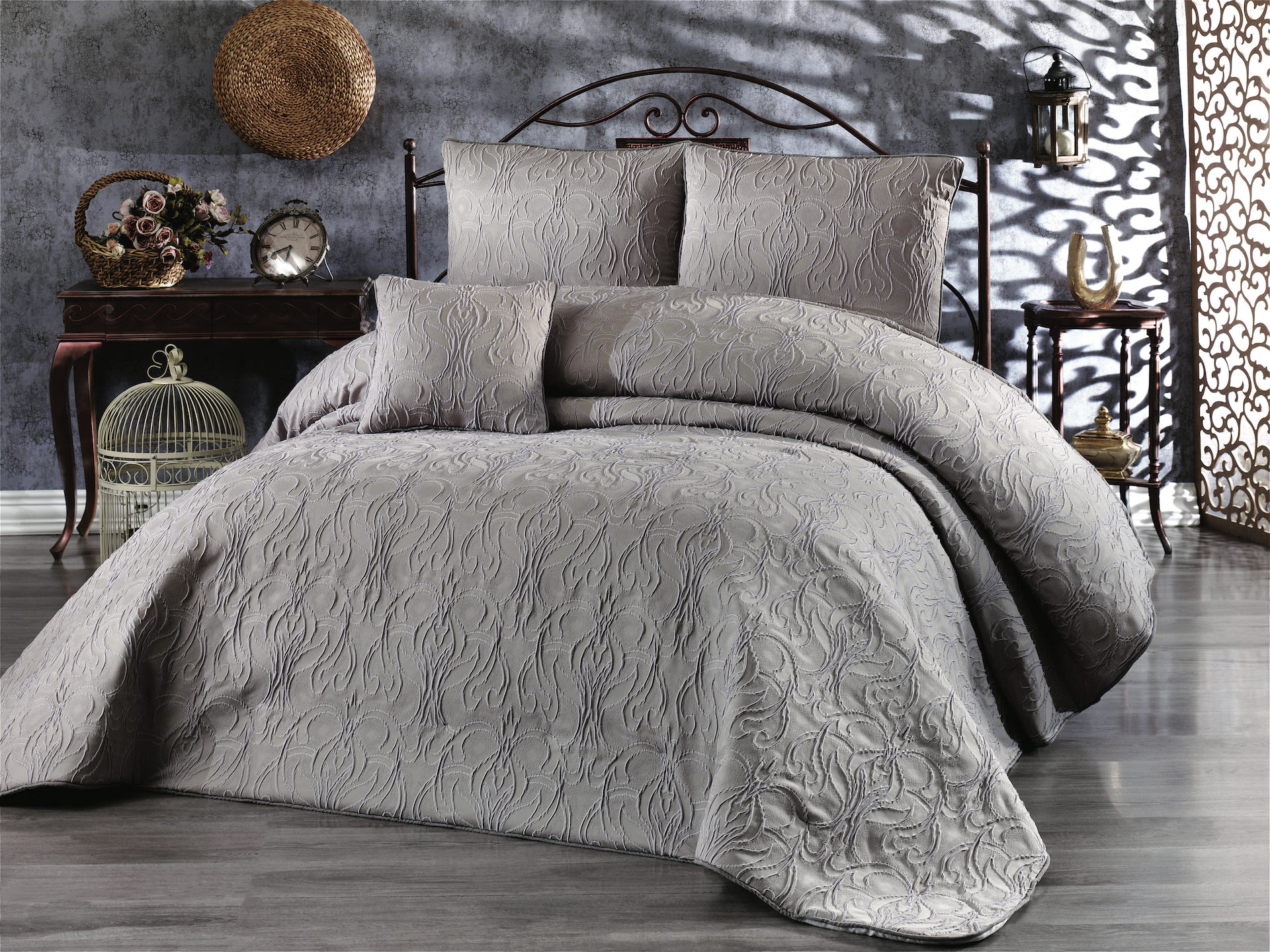 Великолепная коллекция жаккардовых покрывал Milano — это истинное воплощение роскоши. Фактурные жаккардовые орнаменты сочетаются с декоративной поверхностью покрывала, а мягкий кант прекрасно дополняет дизайн, превращая кровать в царское ложе! Покрывало выполнено из полиэстера в сочетании с сатином. Наполнение — тонкий синтепон. Полиэстер удивительно прочный и долговечный материал, он не блекнет на солнце и не теряет своих красок даже при многократных стирках, он не мнется и не электризуется, прочный и легкий — он долгие годы будет радовать Вас своим первоначальным видом, а нежный натуральный хлопок в составе делает изделие мягким и гипоаллергенным. Так же в комплект входят 2 наволочки 50×70 см и 1 наволочка 45×45 см в идентичном дизайне.