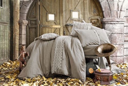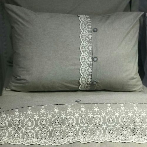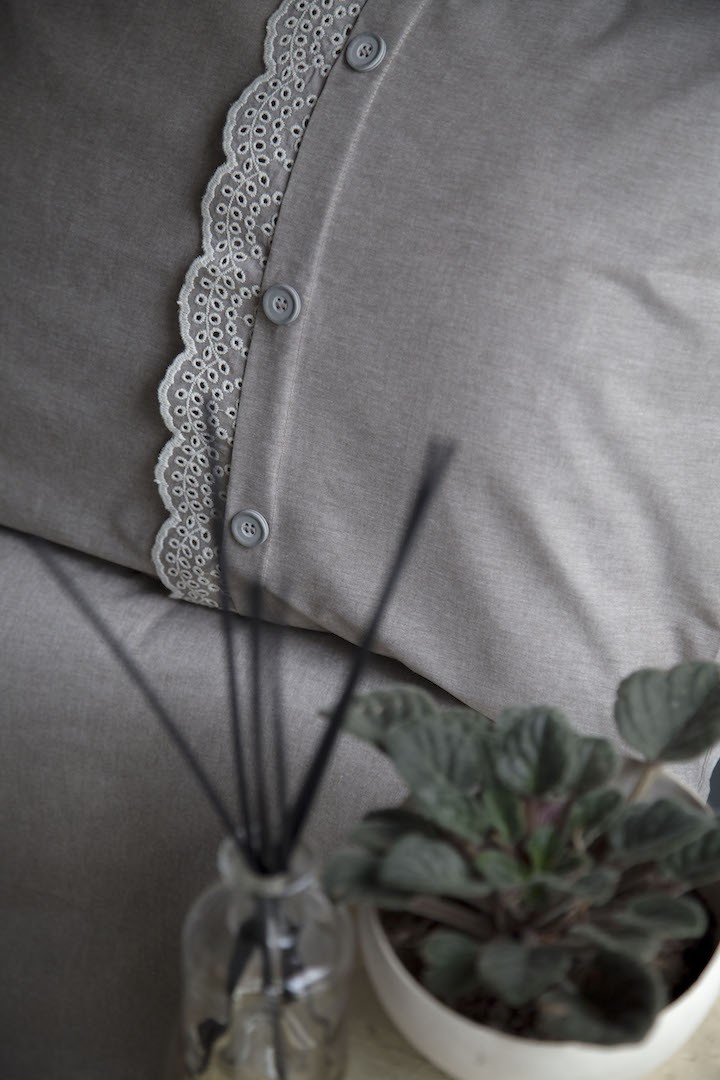 Комплект постельного белья в коллекции бренда Issimo Home из органического хлопка с кружевом «Salome».Комплект окрашен натуральным, природным компонентом.