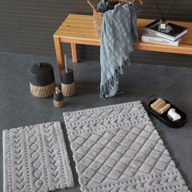 После расслабляющей ванны или теплого душа так не хочется наступать ногами на холодный и скользкий пол! О вашем комфорте позаботятся коврики для ванной, изготовленные из 100%,  быстро сохнут и не скользят. Густой ворс и комбинированные вставки обладают легким массажным эффектом. Очень удобны и просты в уходе, так как стираются в стиральной машине и не требует дополнительных усилий.