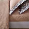 Коллекция сатин планка — это стильное сочетание основного рисунка с однотонным сатином. Пододеяльник скомбинирован из двух тканей. Верхняя ткань — печатный сатин с рисунком, нижняя ткань — однотонный сатин как на наволочке и простыни. Наволочки отделаны аккуратной и стильной планкой.