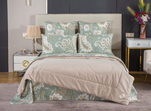 Всесезонная коллекция «Dolce Fiore Cotton» представляет собой комплекты постельного белья и легких двусторонних одеял, в комбинации цветного и однотонного сатина высокого качества. Комплект состоит из легкого двустороннего одеяла, с оригинальным дизайном стежки, отделанное кружевом с бахрамой с 3х сторон. Легко стирается, не требует глажки, быстро высыхает, что позволяет пользоваться им в любое время года. Наполнитель: благодаря миксу органического волокна льна и экофайбера, обладает невесомыми и облегающими свойствам, хорошей воздупроницаемостью и терморегуляцией.