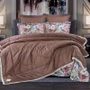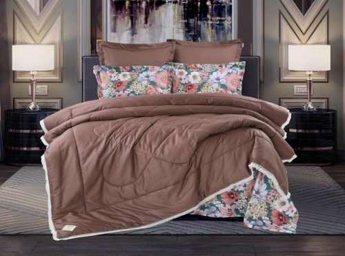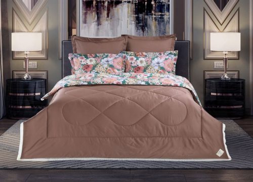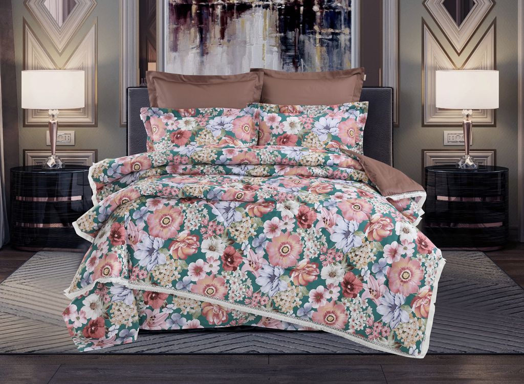 Всесезонная Коллекция «Dolce Fiore Cotton» представляет собой комплекты постельного белья и легких двусторонних одеял, в комбинации цветного и однотонного сатина высокого качества. Комплект состоит из: — Легкого Двустороннего одеяла, с оригинальным дизайном стежки, отделанное кружевом с бахрамой с 3х сторон. Легко стирается, не требует глажки, быстро высыхает, что позволяет пользоваться им в любое время года. — двух наволочек 50х70 из сатина с принтом и двух наволочек 70х70 из однотонного сатина; — простыни из сатина. Коллекция представлена в 3х комплектациях: евро, семейное, полуторное. На выбор самые популярные цвета в этом сезоне.