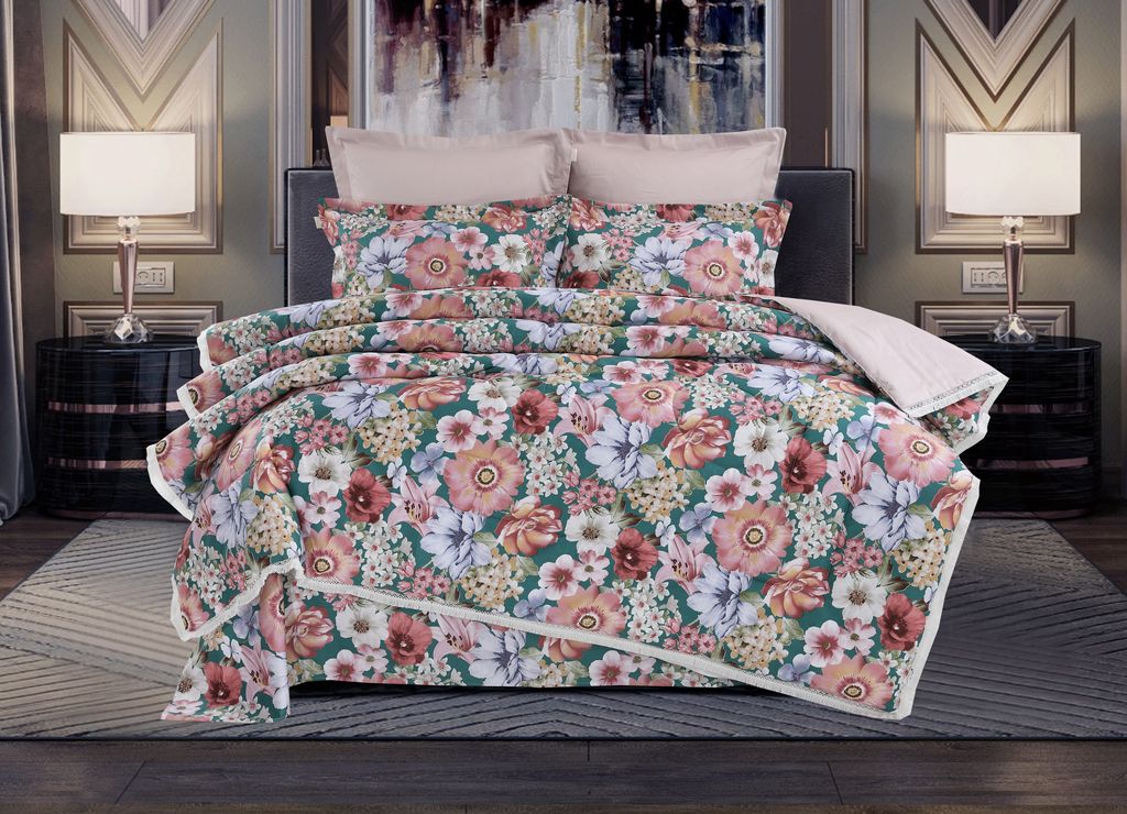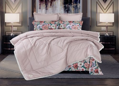 Всесезонная Коллекция «Dolce Fiore Cotton» представляет собой комплекты постельного белья и легких двусторонних одеял, в комбинации цветного и однотонного сатина высокого качества. Комплект состоит из: — Легкого Двустороннего одеяла, с оригинальным дизайном стежки, отделанное кружевом с бахрамой с 3х сторон. Легко стирается, не требует глажки, быстро высыхает, что позволяет пользоваться им в любое время года. — двух наволочек 50х70 из сатина с принтом и двух наволочек 70х70 из однотонного сатина; — простыни из сатина. Коллекция представлена в 3х комплектациях: евро, семейное, полуторное. На выбор самые популярные цвета в этом сезоне.