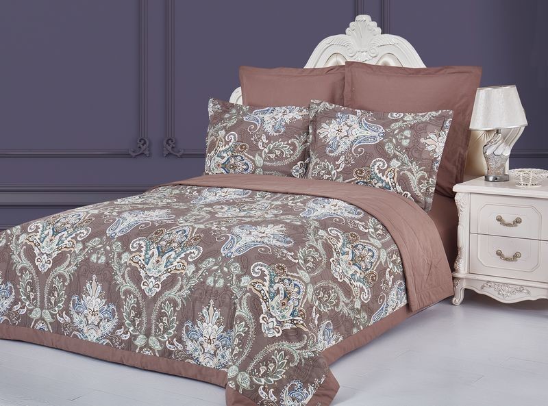 Коллекция постельного белья с одеялом «Sentimento» выполнена из высококачественного печатного сатина. Одеяло: верх — печатный сатин с планкой из однотонного сатина, низ — однотонный сатин. Оригинальный дизайн стежки подчеркивает орнаментный рисунок печатного сатина.