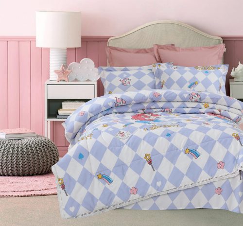 Всесезонная коллекция «Dolce Fiore Cotton» представляет собой комплекты постельного белья и легких двусторонних одеял, в комбинации цветного и однотонного сатина высокого качества. Комплект состоит из легкого двустороннего одеяла, с оригинальным дизайном стежки, отделанное кружевом с бахрамой с 3х сторон. Легко стирается, не требует глажки, быстро высыхает, что позволяет пользоваться им в любое время года.