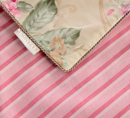 Комплекты постельного белья «KAZANOV.A.»(Казанова) из хлопкового сатина имеют превосходные характеристики: сатин высокого качества, шелковистый блеск, повышенная прочность, насыщенный цвет. Натуральные длинные волокна хлопка, которые используются в производстве материала для постельного белья, имеют высокую плотность, что и увеличивает износостойкость комплектов. Для нанесения рисунка на ткани используется реактивная из современных экологически безопасных красителей.  В пододеяльнике и наволочках используются надёжные молнии, с логотипом компании на застёжке. При пошиве используются разработанные для компании «KAZANOV.A.» (Казанова) , уникальный вид отделки: Витой шёлковый кант.