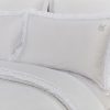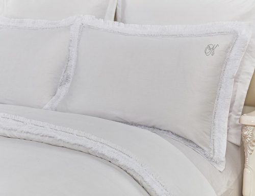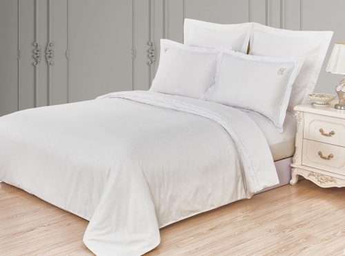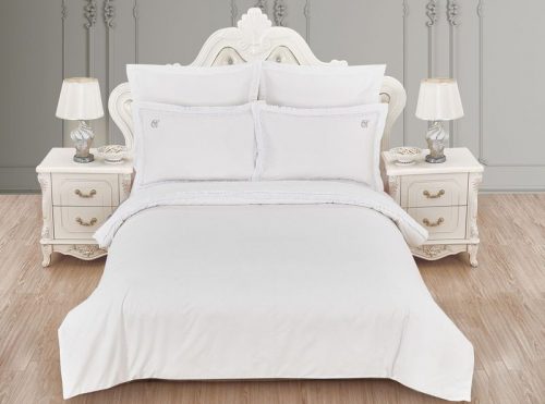 Коллекция Авеллино для любителей роскоши Барроко. Постельное белье с отделкой богатым кружевом выполнено из высококачественного сатина в белом и молочном цвете. Оригинальное кружево, дополненное стразами — на пододеяльнике и наволочках 50х70 на ушках. На наволочках выложена изящная буква К высококачественными стразами, нанесенными на ткань высокотемпературным способом.