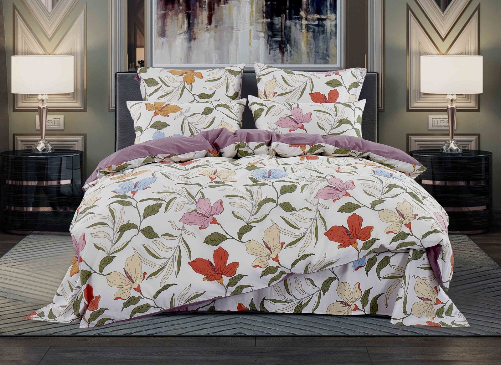 Комплекты постельного белья «KAZANOV.A.» из сатина имеют превосходные характеристики: 100% сатин высокого качества, шелковистый блеск, повышенная прочность, насыщенный цвет. Натуральные длинные волокна хлопка, которые используются в производстве материала для постельного белья, имеют высокую плотность, что и увеличивает износостойкость комплектов. Для нанесения рисунка на ткани используется реактивная и принтерная печать из современных экологически безопасных красителей. Постельное белье комфортно для тела, гипоаллергенно, легко впитывает частички влаги, за счёт чего оно хорошо охлаждает, кожа дышит, а сон становится крепким и здоровым. Великолепно выполнена строчка, отделка витым кантом, молния на всех наволочках и по ширине пододеяльника, точно подобранный материал ткани — компаньона, простота в эксплуатации — все эти свойства превратили традиционный комплект постельного белья в изысканное произведение искусства. Подарите себе здоровый и спокойный сон вместе с комплектами постельного белья «KAZANOV.A.»! Комплекты изящно выложены в Брендовую подарочную упаковку «KAZANOV.A.»: ламинированная коробка + фирменный пакет с ручками из шелковистого витого шнура.