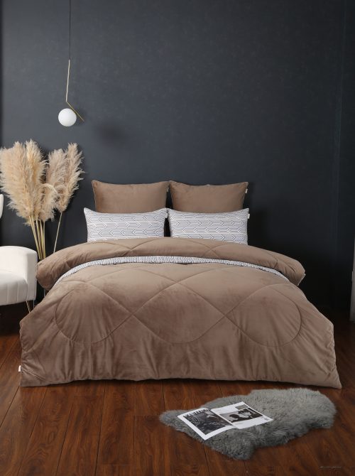 Одеяло: верхняя ткань – роскошный мягкий велюр, низ – высококачественный сатин — 100% египетский хлопок. Наполнитель одеяла 100% микрогель.