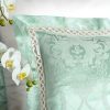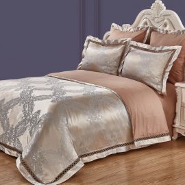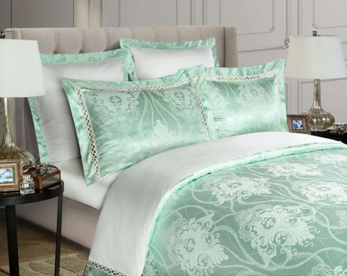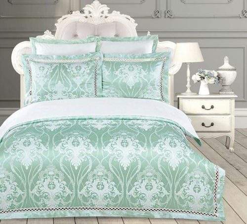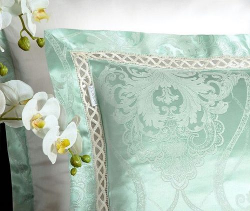 Коллекция постельного белья из жаккарда с отделкой мережкой от Kazanova (Казанова). Роскошная коллекция «Жаккард» — это невесомая и гладкая жаккардовая ткань, по ощущениям напоминающая натуральный шелк, в сочетании с 100% высококачественным хлопковым сатином. Однотонный цветной сатин выгодно подчеркивает уникальные узоры жаккардовой ткани, выполенные в венецианском стиле. Пододеяльник выполнен в комбинации: верх — люксовый жаккард, низ — натуральный сатин, рисунки в венецианском стиле с различными вариациями орнаментов. Наволочки 50*70 выполнены из шелковистого жаккарда, отделаны стильной планкой и аккуратной мережкой. В размере 70*70 наволочки выполнены их 100% хлопкового сатина и отделаны элегантным ушком из жаккардовой ткани в тон основному рисунку. Постельное белье прекрасно сохраняет свой изначальный вид , неприхотливо в использовании, выдерживает большое количество стирок, что является немаловажным фактором при выборе постельного белья.