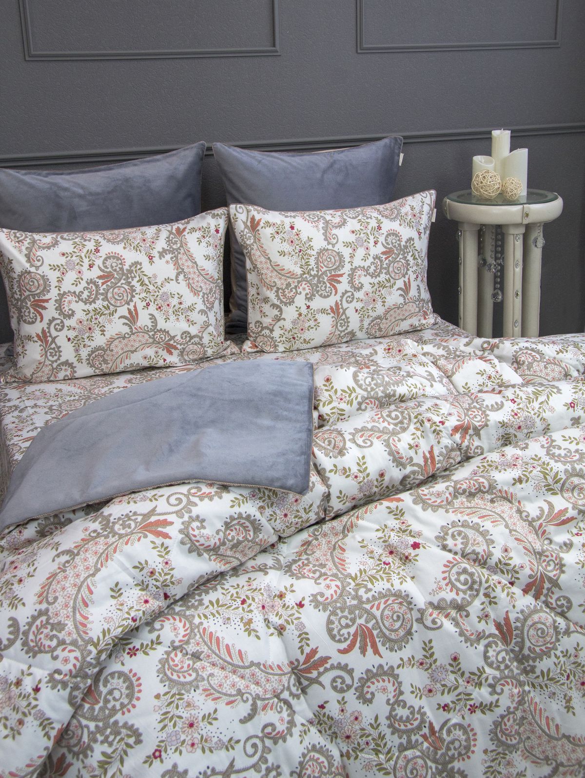 Летняя Коллекция АВС «Dolce Fiore» мы создали коллекцию из трёх видов ткани! Дизайнерские комплекты постельного белья с двухсторонним одеялом! А – прохладный сатин с рисунком, B – Solid Мако сатин, С — нежный велюр! — предусмотрен в одной стороне одеяла и наволочек 70*70. В одеяле — для любителей поспать под кондиционером, идеально подойдет велюровая сторона к телу, сторона с сатином — для любителей естественной прохлады в жару, отделано витым кантом и красивой слежкой! 4 наволочки: 50х70-2шт и 70х70-2шт, простынь из прохладного сатина. Коллекция представлена в 3х комплектациях: евро, семейное, полуторное. На выбор самые популярные цвета в этом сезоне.