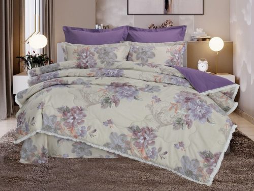 Всесезонная коллекция «Dolce Fiore Cotton» представляет собой комплекты постельного белья и легких двусторонних одеял, в комбинации цветного и однотонного сатина высокого качества. Комплект состоит из легкого двустороннего одеяла, с оригинальным дизайном стежки, отделанное кружевом с бахрамой с 3х сторон. Легко стирается, не требует глажки, быстро высыхает, что позволяет пользоваться им в любое время года. Наполнитель: благодаря миксу органического волокна льна и экофайбера, обладает невесомыми и облегающими свойствам, хорошей воздупроницаемостью и терморегуляцией.