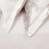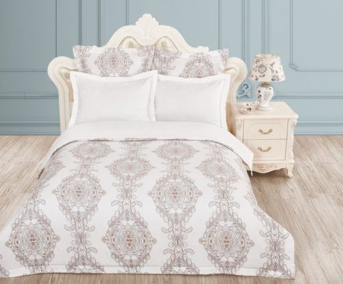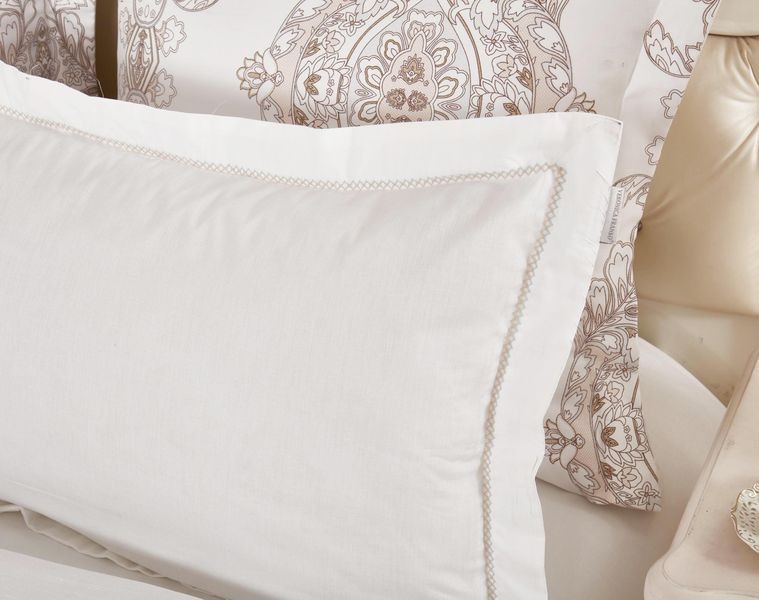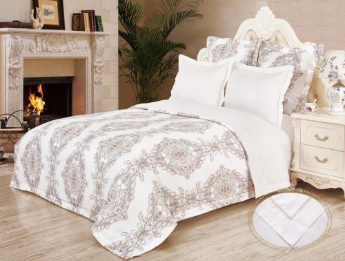 Коллекция постельного белья «жаккардовый сатин» — это стильное сочетание принтовых рисунков с однотонным белым сатином. Для нанесения рисунка на ткани используется реактивная печать. Пододеяльник скомбинирован из двух тканей. Верхняя ткань — печатный жаккардовый сатин со стильным принтовым рисунком — отличается невероятной мягкостью и износостойкостью, очень приятна на ощупь. В качестве нижней ткани в данной коллекции используется однотонный высококачественный 100% хлопок сатинового плетения. Наволочки 70*70 также выполнены из 2 тканей с ушком. Наволочки 50*70 полностью выполнены из однотонного сатина с ушком. На наволочке вышивка выполнена в двух цветах, подобраных в цвет основного рисунка, добавляет в дизайн комплекта неповторимое изящество и легкость.