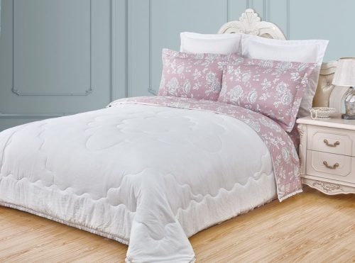 Коллекция «Dolce Fiore» представляет собой комплекты постельного белья и легких одеял, в комбинации сатина и уникальной ткани «матовый лен» (инновационная ткань льняного плетения невероятно мягкая, нежная и прохладная на ощупь). Как известно, плетение льна грубовато, но за счет добавления в ткань вискозы, ткань приобретает новые свойства — прохладу шелка и нежность хлопка. Комплект состоит из: легкого одеяла, с оригинальным дизайном стежки, отделанное кружевом с бахрамой с 3-х сторон. Двухстороннее одеяло выполненно верх — матовый лен, низ — сатин с принтом. Легко стирается, быстро высыхает, что позволяет пользоваться им в любое время года. Наполнитель: Благодаря миксу органического волокна льна и экофайбера, обладает невесомыми и облегающими свойствами, хорошей воздупроницаемостью и терморегуляцией; -двух наволочек 50х70 из сатина с принтом; -двух наволочек 70х70 из матового льна; -простыни из матового льна. Коллекция представлена в 3х комплектациях: евро, семейное, полуторное. На выбор 4 самых популярных цвета в этом сезоне: бежевый, минт, капучино, лаванда.