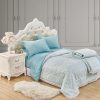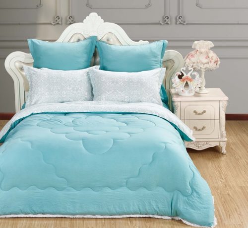 Коллекция «Dolce Fiore» представляет собой комплекты постельного белья и легких одеял, в комбинации сатина и уникальной ткани «матовый лен» (инновационная ткань льняного плетения невероятно мягкая, нежная и прохладная на ощупь). Как известно, плетение льна грубовато, но за счет добавления в ткань вискозы, ткань приобретает новые свойства — прохладу шелка и нежность хлопка. Комплект состоит из: легкого одеяла, с оригинальным дизайном стежки, отделанное кружевом с бахрамой с 3-х сторон. Двухстороннее одеяло выполненно верх — матовый лен, низ — сатин с принтом. Легко стирается, быстро высыхает, что позволяет пользоваться им в любое время года. Наполнитель: Благодаря миксу органического волокна льна и экофайбера, обладает невесомыми и облегающими свойствами, хорошей воздупроницаемостью и терморегуляцией; -двух наволочек 50х70 из сатина с принтом; -двух наволочек 70х70 из матового льна; -простыни из матового льна. Коллекция представлена в 3х комплектациях: евро, семейное, полуторное. На выбор 4 самых популярных цвета в этом сезоне: бежевый, минт, капучино, лаванда.