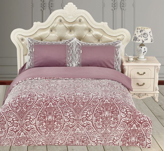 Коллекция Новелла объединяет в себе модели выполненные в уникальной комбинации из 2-х тканей и отделки кружевом и стразами. Пледодеяльник: верхняя ткань жаккардовый велсофт — мягкая ткань с нежным ворсом, украшен качественными стразами, нанесенными высокотемпературным способом. Нижняя ткань высококачественный сатин. Уникальность пледодеяльника, в возможности использовать его зимой в жарких спальнях, как облегающую простыню, в прохладных — с вложением одеяла, летом и в межсезоние вместо махровой простыни! Сатиновая наволочка с отделкой изящным хлопковым кружевом с трех сторон.