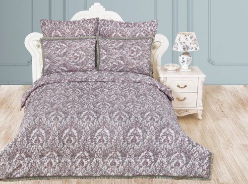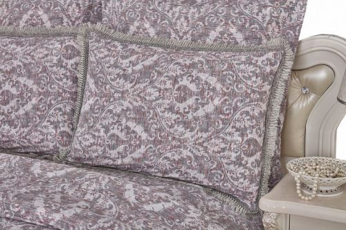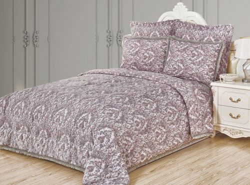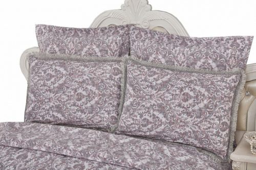 Легкое одеяло, с оригинальным дизайном стежки и уникальной отделкой: нежная отделка в стиле макраме, дополненная нежной бахромой, идеально сочетается по цвету с тканью одеяла. Легко стирается, не требует глажки, быстро высыхает, что позволяет пользоваться им в любое время года. Наполнитель – экофайбер. Наволочки 50*70 украшены кружевом в стиле макраме с бахромой, наволочки 70*70 с «ушками».