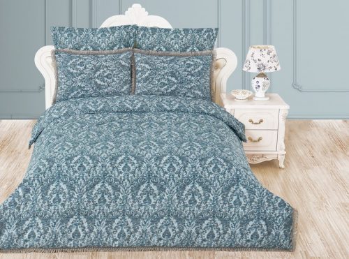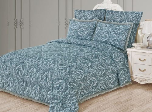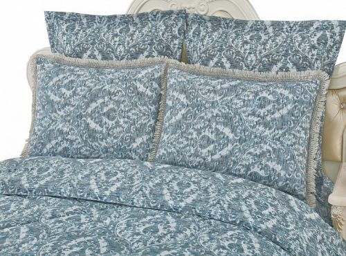 Легкое одеяло, с оригинальным дизайном стежки и уникальной отделкой: нежная отделка в стиле макраме, дополненная нежной бахромой, идеально сочетается по цвету с тканью одеяла. Легко стирается, не требует глажки, быстро высыхает, что позволяет пользоваться им в любое время года. Наполнитель – экофайбер. Наволочки 50*70 украшены кружевом в стиле макраме с бахромой, наволочки 70*70 с «ушками».