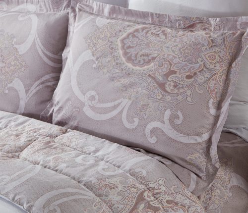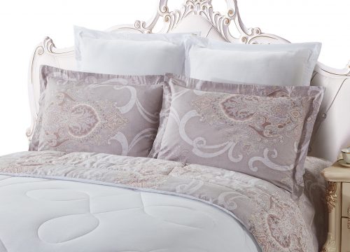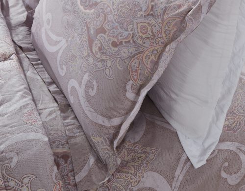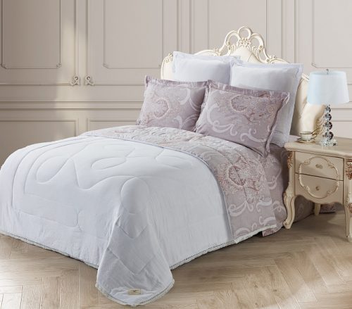 Коллекция «Dolce Fiore» представляет собой комплекты постельного белья и легких одеял, в комбинации сатина и уникальной ткани «матовый лен» (инновационная ткань льняного плетения невероятно мягкая, нежная и прохладная на ощупь). Как известно, плетение льна грубовато, но за счет добавления в ткань вискозы, ткань приобретает новые свойства — прохладу шелка и нежность хлопка. Комплект состоит из: легкого одеяла, с оригинальным дизайном стежки, отделанное кружевом с бахрамой с 3-х сторон. Двухстороннее одеяло выполненно верх — матовый лен, низ — сатин с принтом. Легко стирается, быстро высыхает, что позволяет пользоваться им в любое время года. Наполнитель: Благодаря миксу органического волокна льна и экофайбера, обладает невесомыми и облегающими свойствами, хорошей воздупроницаемостью и терморегуляцией; -двух наволочек 50х70 из сатина с принтом; -двух наволочек 70х70 из матового льна, простыни из сатина.