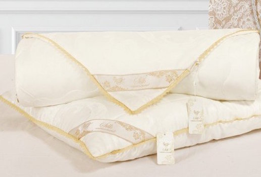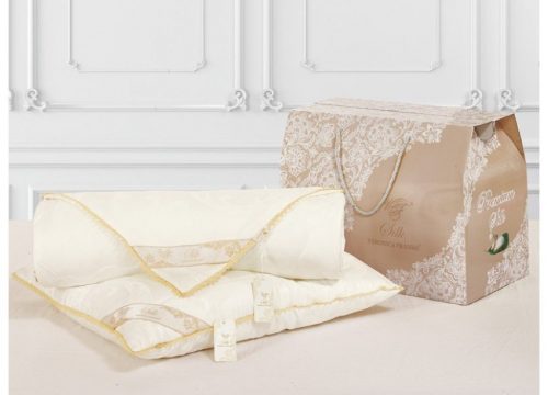 Эксклюзивная коллекция подушек и одеял от Kazanova By Veronica Franko состоит из 4 под коллекций. Их объединяют: роскошные ткани, самые инновационные наполнители, утонченная отделка кружевом. Чехол одеял и подушек выполнены из изысканного жаккардового модала, нежной и воздушной ткани, прохладной на ощупь. Наполнитель одеяла и наполнитель стеганного чехла подушек в каждой под коллекции совпадают. Наполнитель внутренних подушек — силиконизированное волокно, воздушное, мягкое и обладающее упругими свойствами. На каждой модели есть кармашки с образцом наполнителя. Благодаря удивительным свойствам наполнителей их можно использовать как летом, так и зимой. Съемный люксовый чехол на подушке легко стирается и быстро сохнет. Коллекция выдержана в пастельных тонах, как в тканях, так и в упаковке и брендовых аксессуаров. Коллекция одеял и подушек «Silk DeLuxe». Чехлы и наполнитель молочного цвет, отделка кружевом золотистого цвета. Наполнитель в одеяле и чехле подушки: 70% «растительный шелк» (целлюлоза), 30% шелкопряд. Все одеяла и подушки упакованы в брендированные коробки, цвет и дизайн соответствует каждой модели. Коробки с ручками из шелкового витого шнура..
