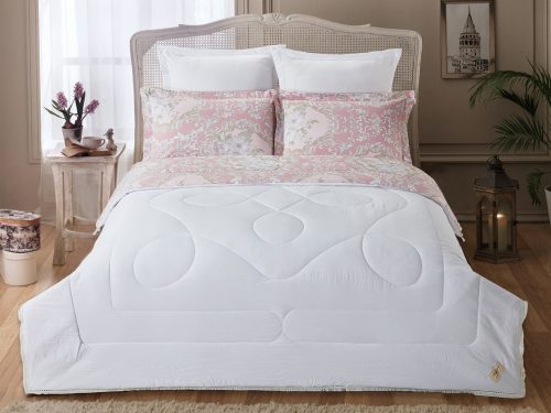 Коллекция «Dolce Fiore» представляет собой комплекты постельного белья и легких одеял, в комбинации сатина и уникальной ткани «матовый лен» (инновационная ткань льняного плетения невероятно мягкая, нежная и прохладная на ощупь). Как известно, плетение льна грубовато, но за счет добавления в ткань вискозы, ткань приобретает новые свойства — прохладу шелка и нежность хлопка. Комплект состоит из: легкого одеяла, с оригинальным дизайном стежки, отделанное кружевом с бахрамой с 3-х сторон. Двухстороннее одеяло выполненно верх — матовый лен, низ — сатин с принтом. Легко стирается, быстро высыхает, что позволяет пользоваться им в любое время года. Наполнитель: Благодаря миксу органического волокна льна и экофайбера, обладает невесомыми и облегающими свойствами, хорошей воздупроницаемостью и терморегуляцией; -двух наволочек 50х70 из сатина с принтом; -двух наволочек 70х70 из матового льна, простыни из сатина.