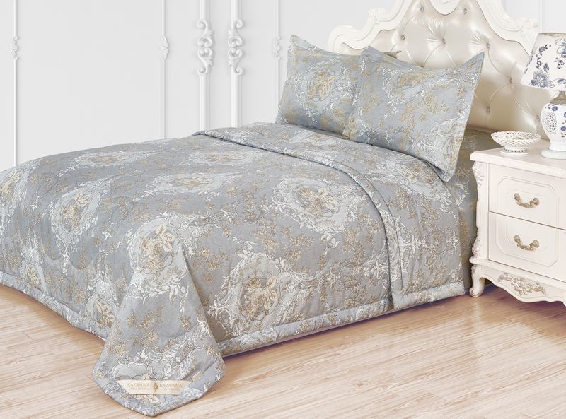 Комплект состоит из наволочек, простыни и одеяло-покрывала с оригинальным дизайном стежки, отделанное планкой с 4х сторон. Уникальным дышащим наполнителем «тинсулейт», обладающим невесомыми свойствам, что позволяет использовать его как летнее одеяло! Легко стирается и быстро сохнет. В комплекте исполузуется ткань сатинового плетения.