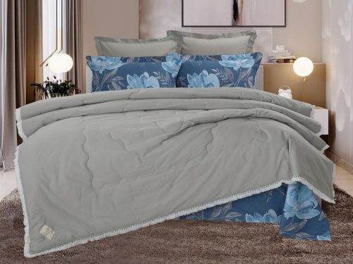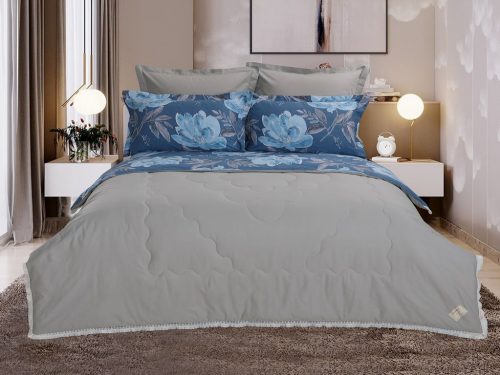 Всесезонная коллекция «Dolce Fiore Cotton» представляет собой комплекты постельного белья и легких двусторонних одеял, в комбинации цветного и однотонного сатина высокого качества. Комплект состоит из  легкого двустороннего одеяла, с оригинальным дизайном стежки, отделанное кружевом с бахрамой с 3х сторон. Легко стирается, не требует глажки, быстро высыхает, что позволяет пользоваться им в любое время года. Наполнитель: благодаря миксу органического волокна льна и экофайбера, обладает невесомыми и облегающими свойствам, хорошей воздупроницаемостью и терморегуляцией.