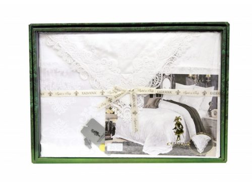 Комплекты изящно выложены в брендовую подарочную упаковку «KAZANOV.A.», выкладка подчеркивает все элементы декора комплекта: ламинированная коробка и фирменный пакет с ручками из шелковистого витого шнура