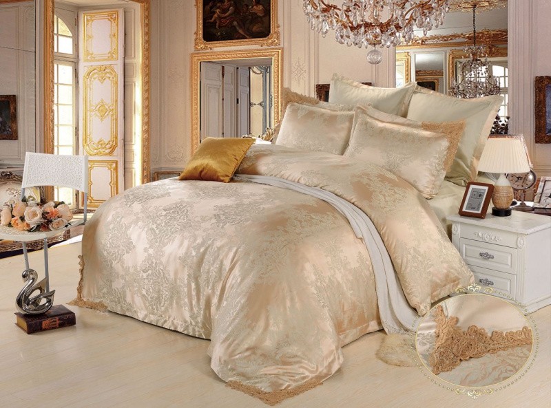 Коллекция постельного белья из жаккарда с вышивкой на от Kazanova (Казанова). Рисунки жаккарда выполнены в античном венецианском стиле с различными вариациями орнаментов: венецианский, римский и флористический. Цветовая гамма предоставлена в самых популярных благородных цветах и оттенках: от светло-молочной гаммы до нежного персикового оттенка, беж, каппучино. Особый шарм комплектам придает отделка вышивкой, эффектно обрамляющим наволочки 50х70 и пододеяльник. Простыня из сатина высокого качества декорирована жаккардовой планкой. Постельное белье прекрасно сохраняет свой изначальный вид , неприхотливо в использовании, выдерживает большое количество стирок, что является немаловажным фактором при выборе постельного белья.